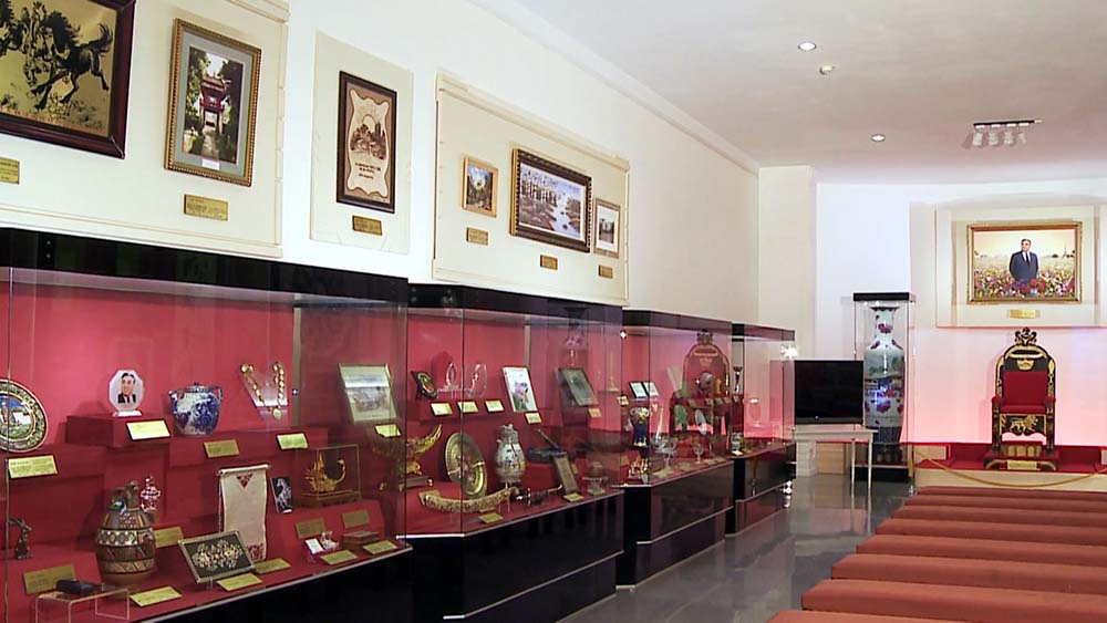 その中には主席と国防委員長の姿を描いた美術作品、各国語で翻訳された不朽の著作、主席と国防委員長の指導の正しさと気高い人徳を称える詩歌、珍しい薬種と衣服、家具調度品、金、銀細工などの工芸品と各種貴重品、色々な動物の剥製品と朝鮮人民との連帯を象徴する祝いの旗と祝賀文などがあります。