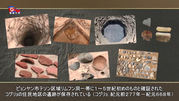 「学部では、ピョンヤン市テソン区域リムフン洞一帯でコグリョ時代の井戸の遺跡2個、建物址の一部と1基の甕棺墓、煉瓦で築いた1個の地下構造物を新しく発掘し、瓦と土器の欠けら、煉瓦、臼のくぼみを始め多くの遺物を収集しました」