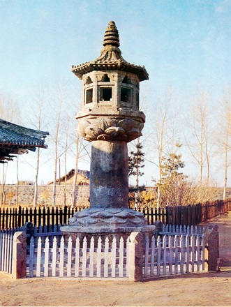 パルヘの文化遺産であるサンギョン石灯籠には先行したコグリョ文化との継承関係を見せる特徴がはっきりと表れています。柱の形がコグリョ時代に流行した胴張りになっていることやコグリョの人たちが好んで使った8角形の平面図形が建築の要素に見事に適用されていることなどがその好例です。