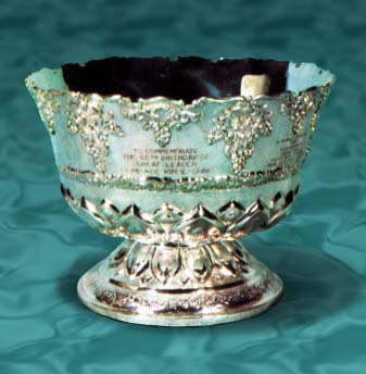 偉大な金日成主席に贈った銀の果物の器