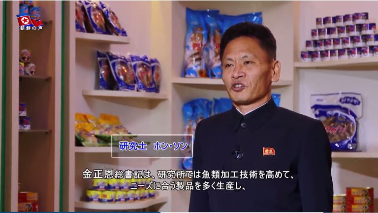 「金正恩総書記は、研究所では魚類加工技術を高めて、ニーズに合う製品を多く生産し、消費者の意見もたびたび聞いて、品質を絶えず改善しなければならないと言いました。それで研究所ではピョンヤン・テドンガン水産物食堂とピョンヤン地下商店、また各地方に対する製品の供給を拡大し、品質を絶えず向上させています」