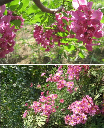 シンさんの家の庭や周辺の小山には色々な花の潅木や木が生い茂っています。春ともなればよろずの花が咲き乱れ、夏は緑に覆われ、秋になれば野生の果物がたわわに実って風致を引きたてます。このような美しい風致は一年や二年の間にできたものではありません。40数年もの間のまじめな努力によるものです。
