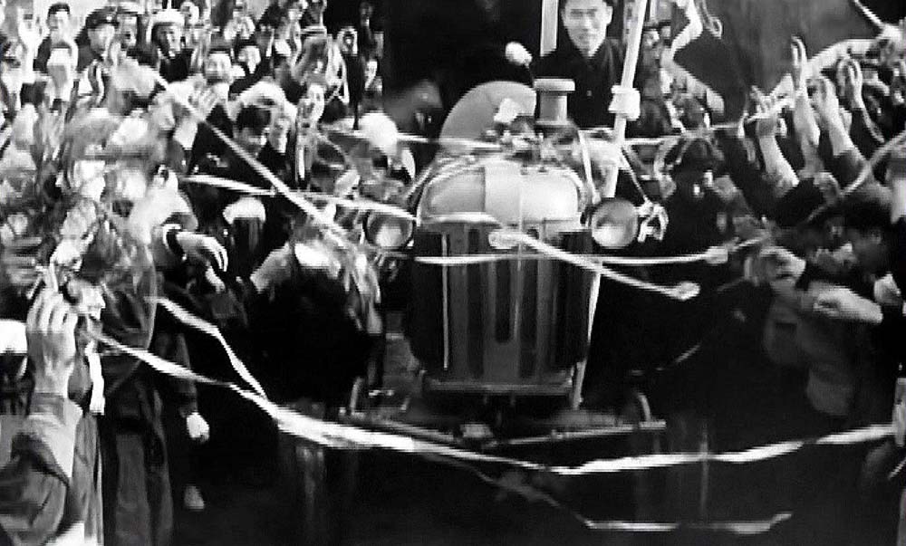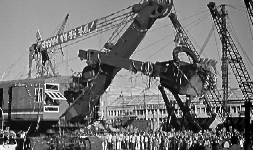 カンソン製鋼所の労働者は6万トン能力の分塊圧延機で12万トンの鋼片を生産し、国中の至る所で生産が大きく伸びました。30数日間で初の「チョンリマ」号トラクターが、40日間で「スンリー58」型トラック第1号が生まれました。大型ポンプと掘削機、ブルドーザーばかりか、8メートル・ターニングミルや3千トン・プレスも朝鮮の労働者が独力で見事に製作しました。首都建設に参加した人たちは14分に1世帯を組み立てる新しいスピードを編み出し、青年建設者は3~4年はかかるというヘジュからハソンまでの線路工事を75日間で終えました。