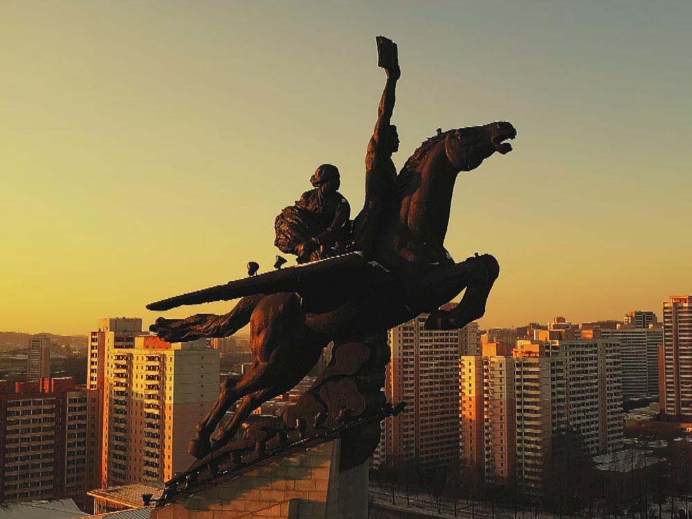 ピョンヤンの都心にチョンリマ銅像があります。チュチェ50(1961)年4月15日に除幕しました。チョンリマ銅像は、共和国の発展の歴史に1ページを添えたチョンリマ時代を象徴する記念碑です。