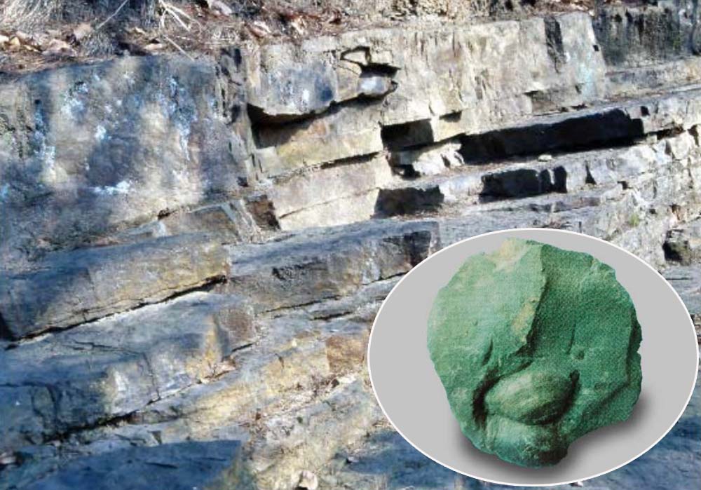 テソン山の中生代化石はピョンヤンのテソン山*1公園の入り口の左側の山の斜面にあります。1950年代中ごろ、この地域の地質調査の過程に発掘されました。化石層の厚さは2メートル、長さは100メートル以上です。