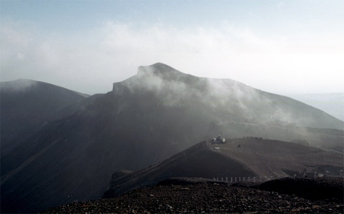 標高2712メートル、ペクトゥ山で3番目に高い壮大な峰です。ほとんど垂直に切り立った崖に、なだらかな稜線が続いています。峰の斜面と頂は、火山溶岩のスラグ型凝灰岩の赤色に映えて、あたかも力強く翻る大きな赤旗を思わせます。