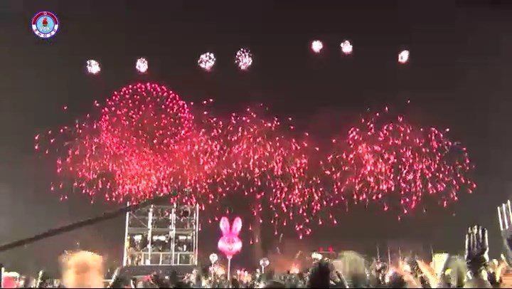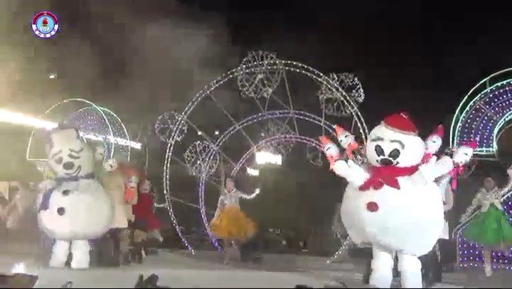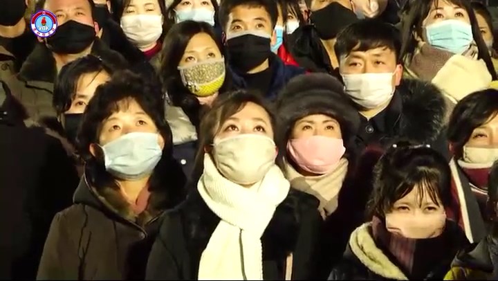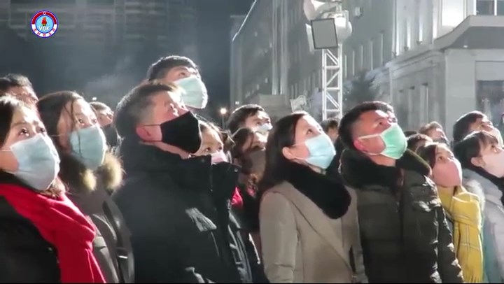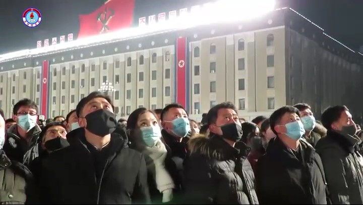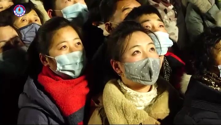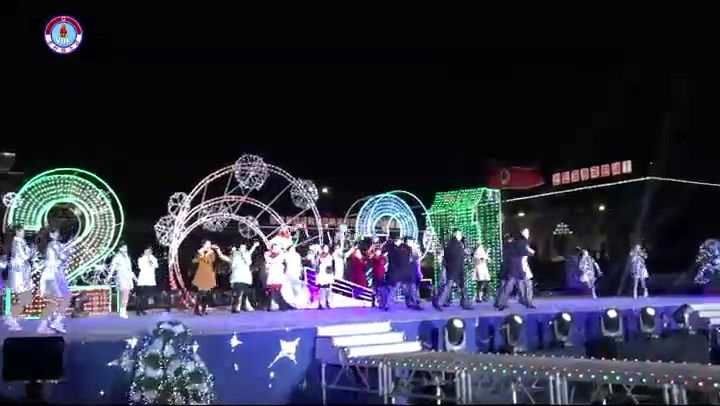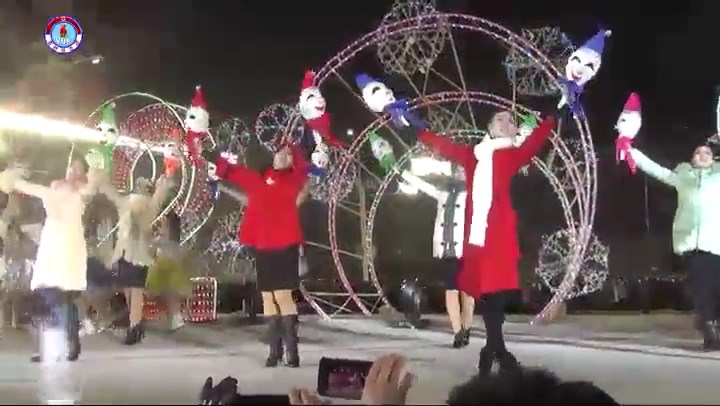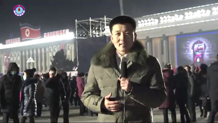 シン・ヨンイル:視聴者の皆さん、ここは平壌の金日成広場です。 ご覧の通り新年を一番先に迎えようと大勢の市民が集まっています。 とても賑やかです。 今、金日成広場では芸術公演が行われています。