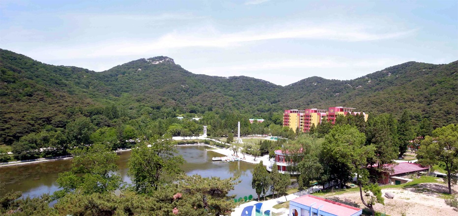 リョンアク山は山頂まで登山道が整備されていて、ピョンヤン市の美しい景色が一望の下に見渡せます。そしてところどころにサービス施設があり、勤労者がレジャーを楽しんでいます。山のふもとには、設備完備の少年団キャンプ場があります。