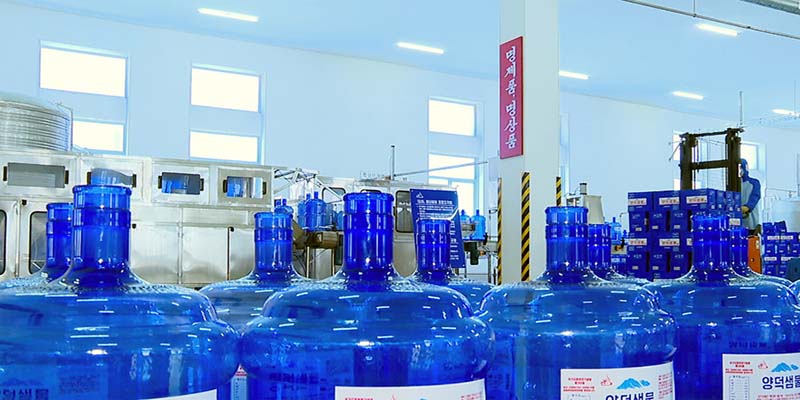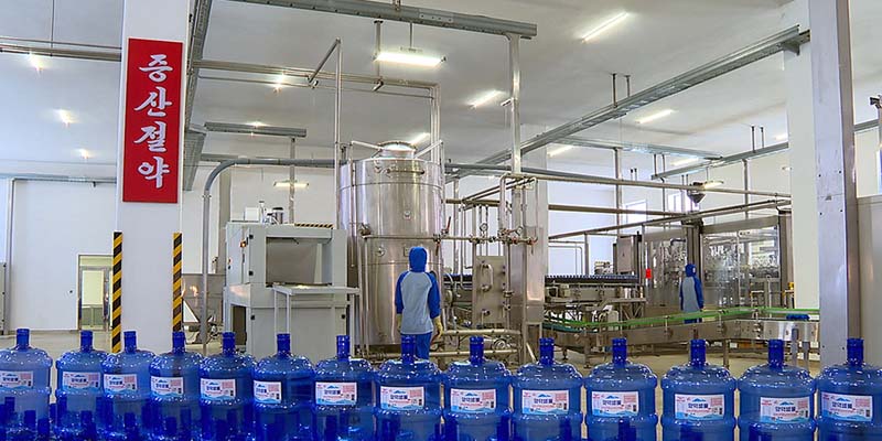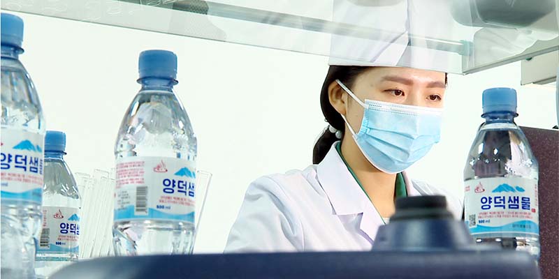 工場の人たちの努力によって、純粋の味と栄養成分がそのまま保存されたヤンドク・ミネラルウォーターが毎日、ピョンヤン市民に供給されています。