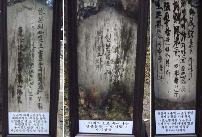 チョンボン密営の幹にスローガンを書き込んだ木
