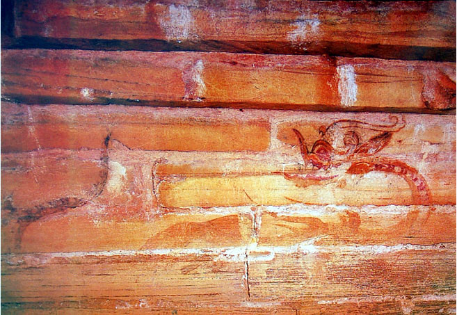 玄室は壁と天井はもとより、床まで大きな大理石で積み上げました。壁画はその石の上に直接描いたものです。壁の四面に四神を描きましたが、特徴なのは青竜と朱雀です。青竜は頭を後ろに振り向ける姿で、朱雀は頭が禿げていて、羽と尾は単純です。