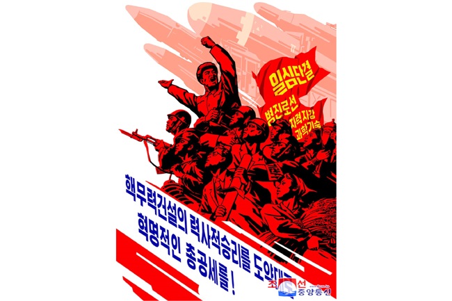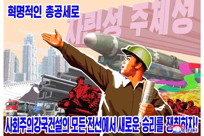 敬愛する最高指導者金正恩元帥の歴史的な新年の辞に示された重要課題の徹底的な実行へと、軍事と人民を力強く励ますポスターが出ました。
