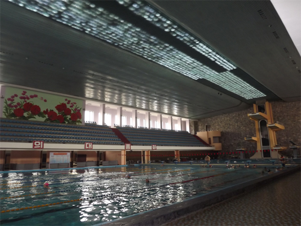 ピョンヤンの風光明媚なポトン川*1の辺には市民向けの施設が多くあります。ヘルスセンター・チャングァンウォン*2とアイススケートセンターもその中の一つです。これらの施設は、偉大な金正日総書記の熱い人民愛を今に伝えています。