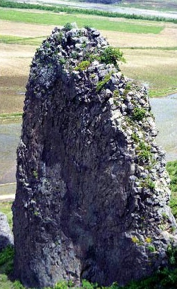 この岩は玄武岩が侵食作用によって削られ、噴火口だけが残って成されたものです。平野の真ん中に突起した岩の高さは50メートルほどです。岩の下の部分の周りは140メートルであり、上の部分の周りは21メートルです。