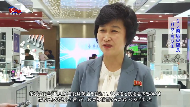 「うちの商店のマークと名にも、商店のどこにも科学者と技術者を大事にする敬愛する金正恩総書記の思いやりがそのまま宿っています。それで、私たあ並々ならぬ誇りと愛着を抱いて働いています」