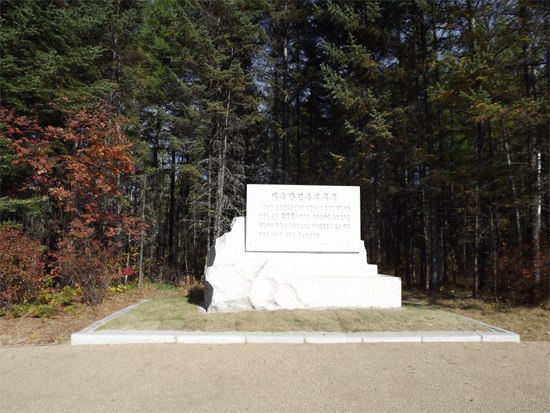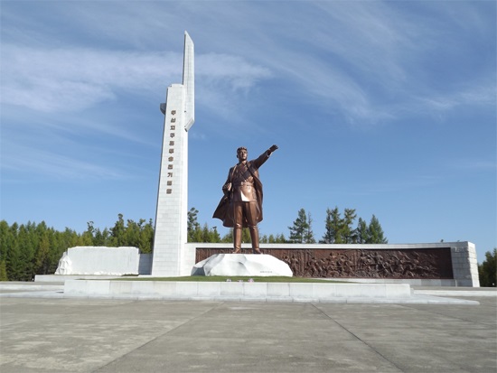 朝鮮人民革命軍の主力部隊を率いて、チョン峰、コンチャン、ペゲ峰を経てサムジヨン*1に着いた主席は、ペクトゥ山*2の裾野に果てしなく広がる高原地帯を白昼に横断して、ムサン地区に速やかに進出するようにしました。