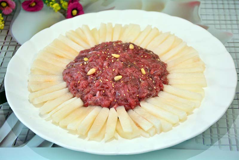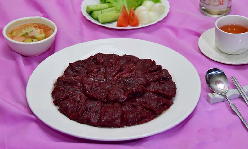 ダチョウの焼肉や煮汁など一般の料理と共に、色々な創作料理にも腕を振るっています。朝鮮料理協会との緊密な連携のもとで、ダチョウの首や翼の蒸し料理など数十種のダチョウ料理の科学的なレシピを標準化しました。