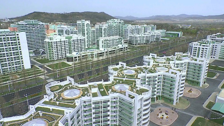 そして周辺の石材工場から出る石の粉を利用してカラーの壁塗り用の材料を開発するなど、リサイクル化での成果が目立っています。エコ建築の技術が導入されたピョンヤンのリョミョン通り*1の建物には、この工場で製作された湛水パネルが広く利用されました。
