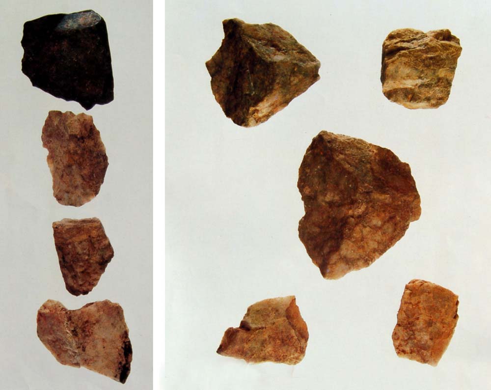 「リプソク里遺跡の家跡は、踏み固めた粘土の上に柱を立てた長方形の室屋です。ここから土器と石器、骨角器と動物の骨が発見されました。土器はほとんどが欠片で、まともなのは2つしかありませんでした。そのうちのひとつは独楽の器で、細長い首と肩がある小壺でした。石器にはやじり、斧、短剣、ノミ、石の鏡、輪車などがありました。この他、骨で作った鏃と錐もありました。動物の骨は30数個体分が発見されましたが、鹿など獣の骨が半分を占めていました」