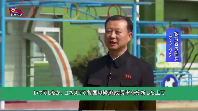 「いつでしたか、ユネスコで各国の経済成長率を分析した上で教育期間を1年だけ延ばしても経済成長率が9%以上高まるという結果を発表したことがあります。これは教育期間を延ばせば延ばすほど人材の育成と経済の発展に有益だということを示しています。しかし、それを知っていながら投資があまりに多くかかるのでどの国もすぐには受け入れようとしません。総書記の教育重視の思想によって、わが国では事情が苦しい中でも学制を1年延ばし初等教育と中等教育の発展に大きな力を入れています」