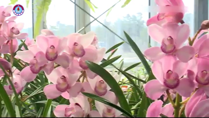 万福花が生まれた平壌フラワー研究所です。研究所では日増しに高まる人民の文化生活の要求を満たす為に、色々な品種のフラワーとドライフラワーへの研究と栽培に励んでいます。ここの科学者達は数年間の苦心の末、シンビジウムの品種の中から21固体を交雑して新種のシンビジウムを育種しました。研究チームの1人、パン・ヒョンイム主任です。