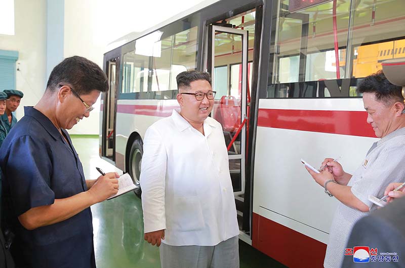 ピョンヤン・トロリーバス工場を訪れた金正恩総書記は、新型のトロリーバスが前のものより一段と発展したと言って大いに喜びました。