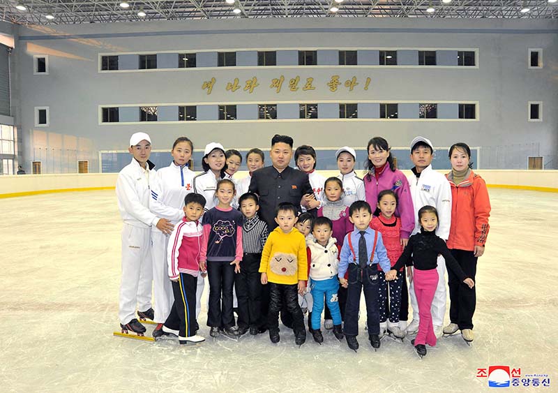 金正恩総書記は広々としたリンクでスケートを楽しむ市民と子供たちを満ち足りた気持ちで眺めました。