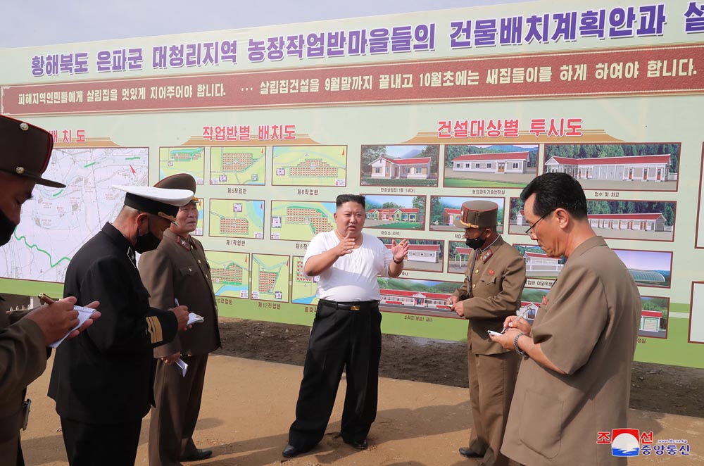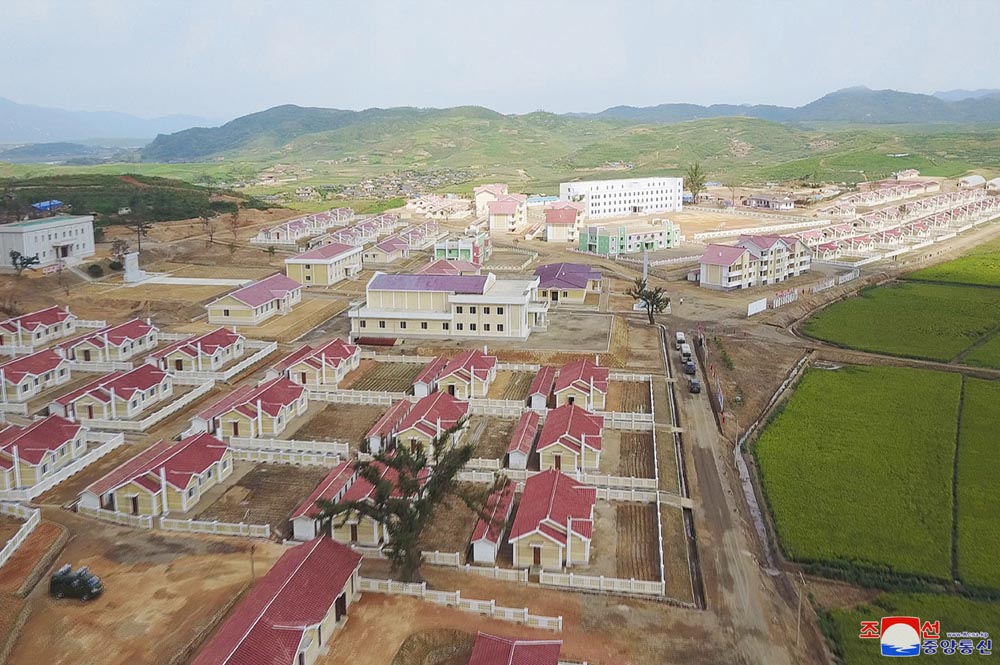今年9月のある日、金正恩委員長はファンヘ北道*1ウンパ郡*2テチョン里*3一帯の被害復旧現場を訪れました。水害の爪痕をなくし、新しい住宅が建てられる村を眺めていた委員長は、農民の求める通りで、農民に喜ばれて初めて、新しく建設する甲斐があると言いました。