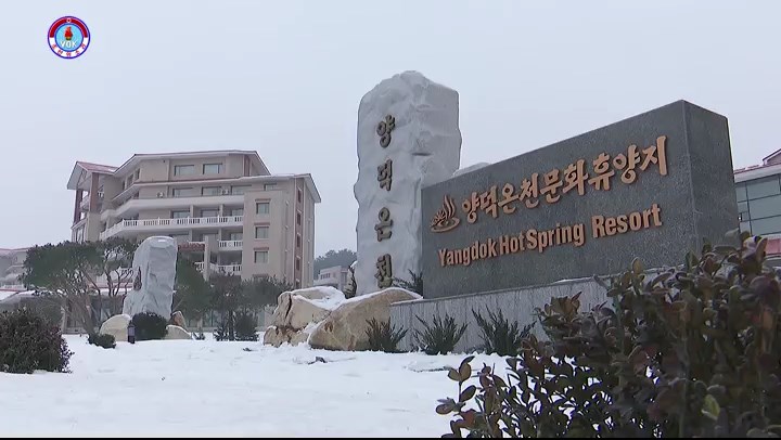 ヤンドク温泉文化休養地は朝鮮労働党の人民へのプレゼントである。敬愛する最高指導者金正恩委員長は建設関連の2000点余りの予想案を指導し、7回も現地指導した。