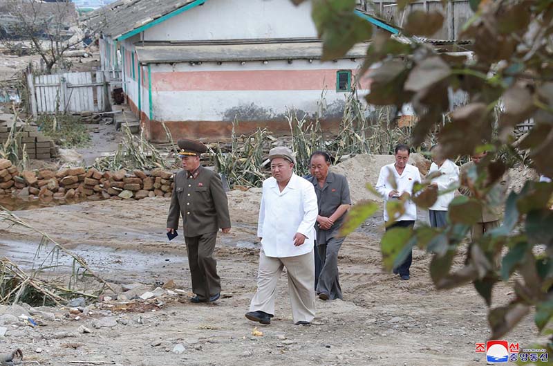 そして、列車で危険千万な峡谷の線路を走り、台風と大水による被害を受けた地域を訪れ、人民の生活安定のための措置を取り、対策を立てました。