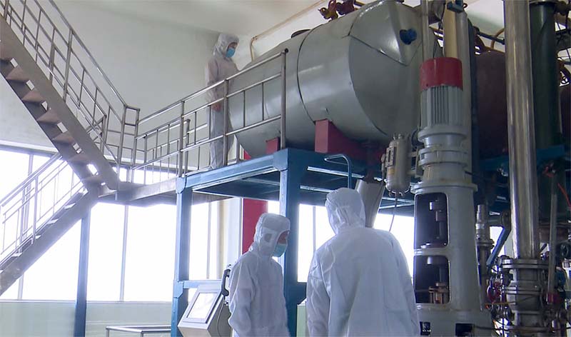 フンナム製薬工場では、工場自らの技術力に頼って、数十種の原料と中間体の国産化のための技術上の懸案を解決しました。これに基づいて、技術的な準備が終わった複数の中間体を生産に導入し、一部の基礎化学原料を自ら賄う技術工程を確立しました。