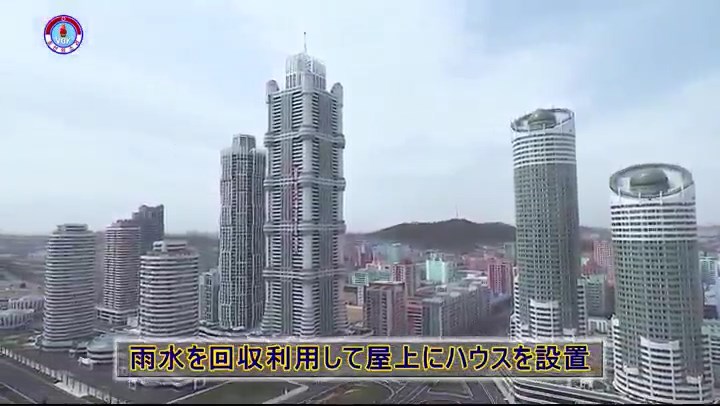 平壌のリョミョン通り*1です。リョミョンとは黎明の事です。超高層建築群と多層建築群が完璧なまで調和した省エネ・エコ建築のニュータウンです。