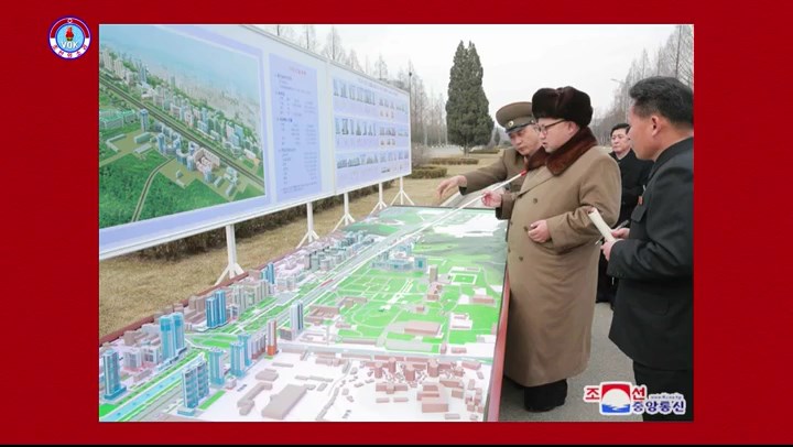 チュチェ105年(2016)3月17日、総書記は現地に赴いてリョミョン通りの建設を宣言しました。リョミョン通りと命名した総書記は、「リョミョン通りが建てられれば、教育者と科学者・人民により文化的な生活条件を保証する人民の通りが、また1つ生まれるだろう」と言いました。1日も早く人民の為のニュータウンを建てようと総書記は数十回に亘って1390余りの完成予想案を指導し、何度も建設現場を訪れました。