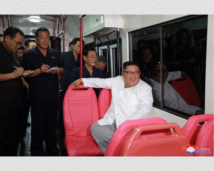 人民が利用する新型のトロリーバスと路面電車を見るため、万事を後に回して現地に出向き、人民の食生活に潤いをもたらすため、サムチョン・ナマズ養殖工場とクムサンポ塩辛加工工場を訪れ、献身の労苦を捧げました。
