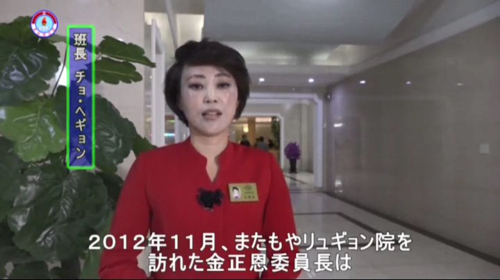 「2012年11月、またもやリュギョン院を訪れた金正恩委員長は、リュギョン院がオープンするなら、人民が大勢来るだろうとし、運営とサービスをきちんとすべきだと言いました。このように、リュギョン院は人民にこの世でもっとも文化的で幸せな生活をさせようとの、金正恩委員長の限りない献身と人民愛が生んだ崇高な結晶です」