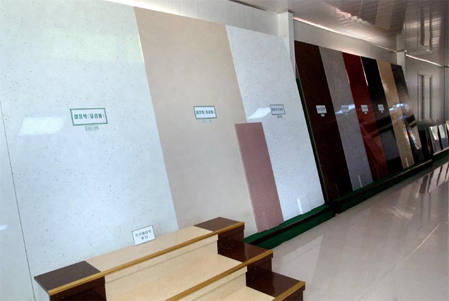 今、朝鮮では、国の至る所にモニュメンタルな建築が多く建てられています。これに合わせ、朝鮮労働党は仕上げ建材の多様化、多種化、国産化を重要な政策に示しています。何よりも、各工場で自らの技術力を絶えず高めるようにしています。