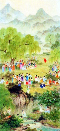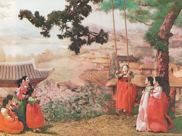 ブランコ乗りは昔から朝鮮の女性が楽しんだ伝統の遊びの1つです。春と秋に盛んに行われました。