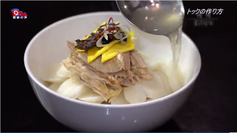 「史料によりますと、『味噌汁を煮てから餅を小判型に輪切りにして入れ、また豚肉と牛肉、雉肉、鶏肉などを入れて、大晦日の夜に一杯ずつ食べるが、これを餅湯、餅汁と言う、正月には餅汁、トックを食べる』となっています。お正月になれば誰でもトックを食べたので、またこの日になると誰でも一歳ずつ年を取ると言うことから、『添歳餅』とも呼びました。トックは、雉肉を入れて煮るのが一番ですが、それがなければ代わりに鶏肉を使いました。それで『雉子の代わりに鶏も使う』と言う諺も生じました。地方によって特色を出したトックがあります。今、トックは朝鮮人民の間でおせち料理だけでなく、普段、食べるものとなっています」
