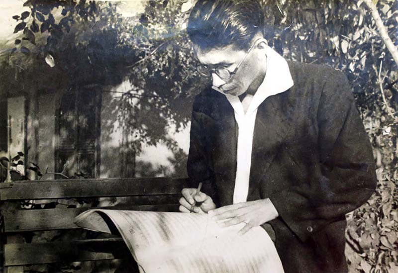 ある日、キムさんは詩人のリ・チャン*2さんが書いた「金日成将軍の歌」を見ました。作曲家でもなく、専門に音楽教育を受けたこともないキムさんでしたが、その場で歌に曲を付けることを決心しました。こうしてチュチェ35(1946)年6月、不滅の革命賛歌「金日成将軍の歌」が世に送り出されました。