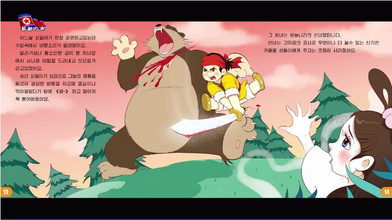 走っていってみると、雄牛ぐらいの熊がある娘の前でとがった歯をむき出しているのです。