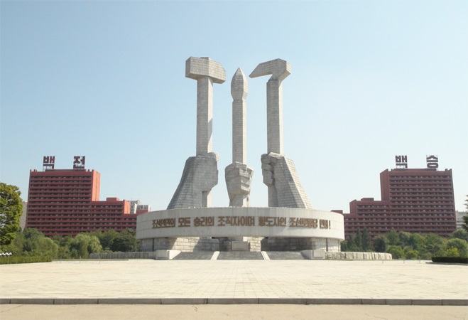 党創立記念塔は朝鮮労働党を創立した偉大な金日成主席の不滅の業績を末永く伝えるために建てられた塔です。ピョンヤン市*1テドンガン区域*2のムンス通り*3に位置しています。
