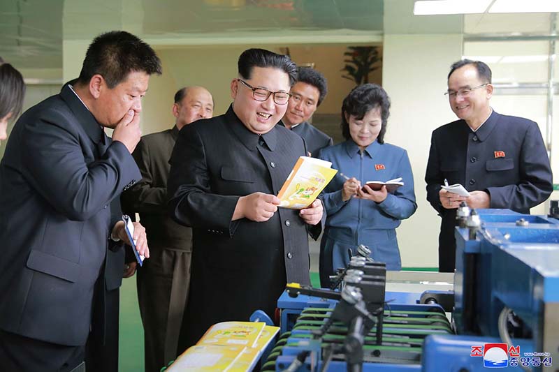 チュチェ102(2013)年6月のある日、新築されたピョンヤン基礎食品工場を訪れた総書記は、工場の従業員がキムチェク工業総合大学の遠隔教育ネットワークで勉強しているということを知って、とても喜びました。その後も多くの所を訪ねるたびに、科学技術普及室を見て、その運営の実態もつぶさに把握し、誰もが働きながら学ぶ教育システムに加わって熱心に学ぶべきだと教えました。