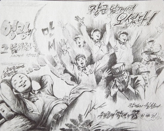 ハンマーの上に腕枕をし、幸せそうな笑みを浮かべてうたた寝する若い兵士、夢の中で「将軍が来た!」と叫ぶ兵士たち・・・美術家でもない普通の兵士が描いたこの絵は今も、人民軍軍人と人民に深い感銘を与えています。