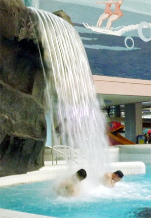 一番の人気は滑り台です。急流を滑り降りながら、嘆声を上げる人たち、その格好も様々で、笑いを誘います。本当に、清らかな水と共に、喜びと笑いいっぱいで、誰もが嬉しい気分です。