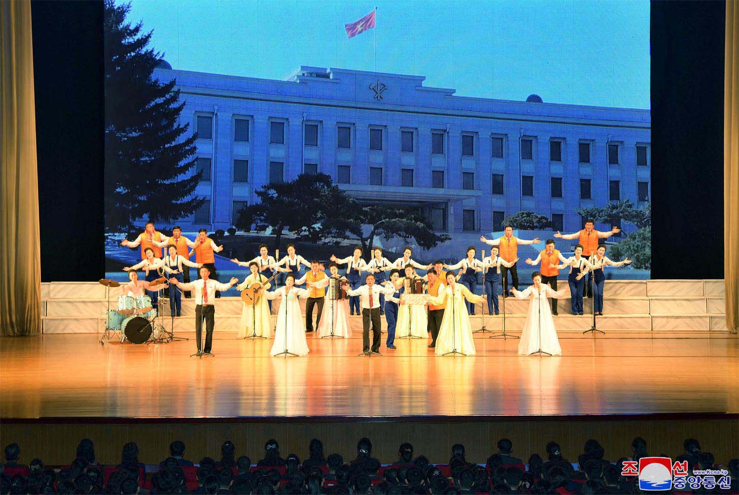 金正恩同志は思想性と芸術性共に非のうち所がない公演を見て深い感銘を受けたとし、年末に出演者をピョンヤンに招きました。こうして12月の末、ピョンヤンで異色の公演が行われました。