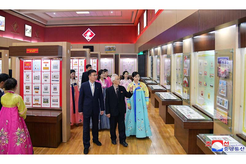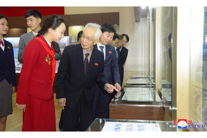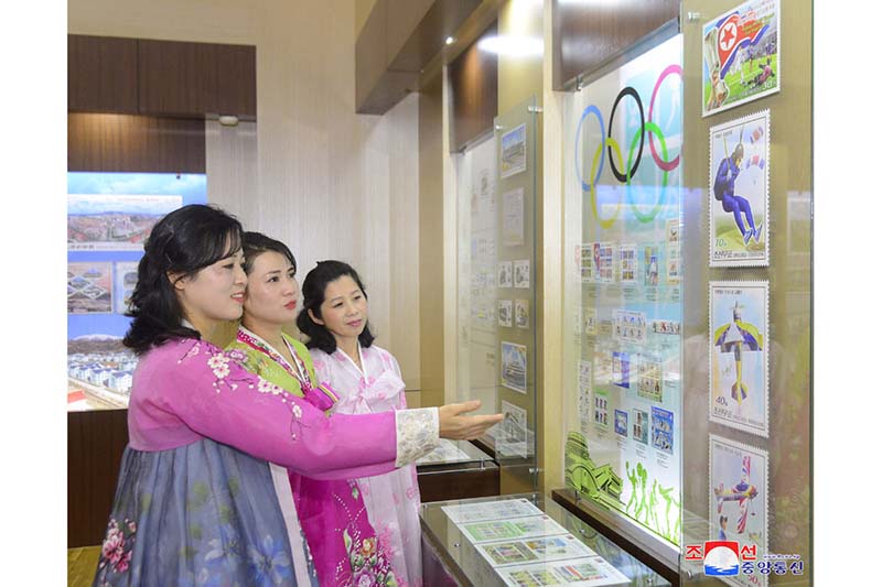 金正日国防委員長の貴い革命的生涯を称える切手と金正恩総書記の不滅の業績を見せる切手が展示されています。
