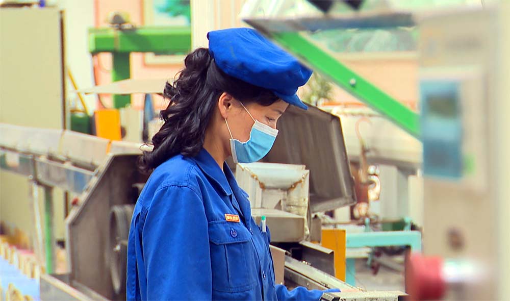「最大非常防疫システムに移行した今の状況に合わせて、工場では職場別に隔絶して、作業空間の隅々に至るまで消毒を強め、生産を強く推し進めています。うちの職場だけを見ましても、いつにもまして条件は不利ですが、誰一人ためらったりせず、工場の労働者が党に立てた決意を無条件実行するため、電力ケーブルの生産を日程どおりに、計画通りに達成するため鋭意努力しています。必ず、自力で今の困難を乗り切るという思いがいっそう強くなりますね」