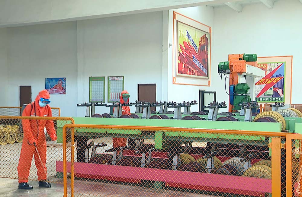 ピョンヤン326電線総合工場の労働者は最大非常防疫システムに移行した現況に合わせて、生産をきちんと行っています。