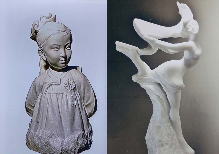 作品の叙情性を強く主張するキムさんは、人物のセンチメンタルでデリケートな感情を平易で簡明なタッチで表すのがお手の物です。主に大理石を材料とするその作品は、いずれも洗練された感性を伝えます。