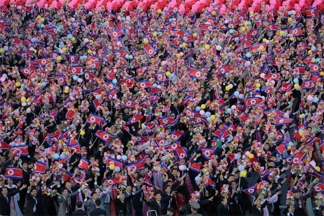 朝鮮人民は、偉大な金日成主席と金正日総書記を永遠に指導者と仰ぎ、敬愛する最高指導者金正恩委員長と母なる党に運命も未来も全て委ねて、その下で代々幸せに暮らし、チュチェの社会主義強国を建てるでしょう。